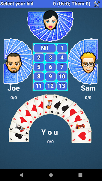 ゲームの目的は、対戦相手よりも先に500ポイントに到達することです。各プレイヤーは(スペード以外の)カードをリードし、他のプレイヤーはできる限りそれに従う必要があります。スートに従うことができない場合は、どのカードでもプレイできます。スペードを含むトリックは、プレイされた最も高いスペードによって勝ち取られ、スペードのないトリックはリードされたスートの中で最も高いカードによって勝ち取られます。